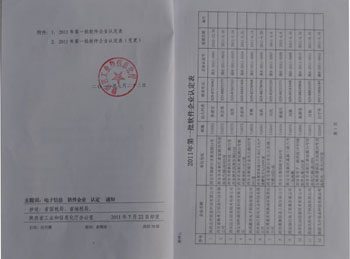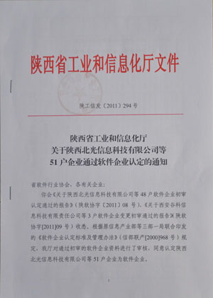 7月22号 我公司接收到陕西省工业和信息化厅下发的通过软件企业认定的通知具体信息如下: