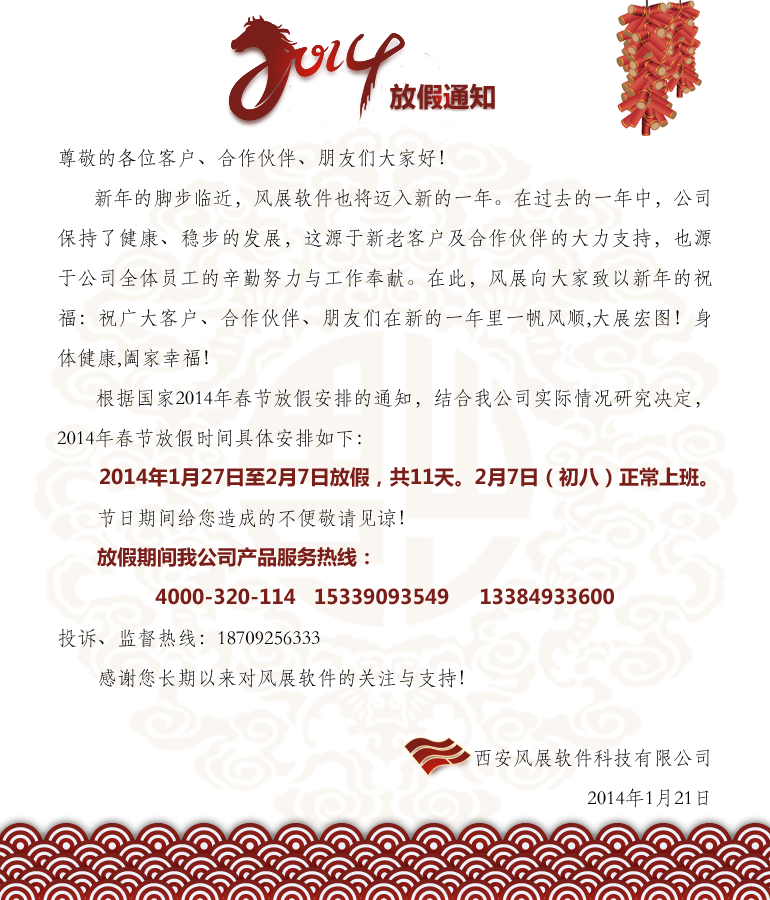 关于2014年春节放假通知
