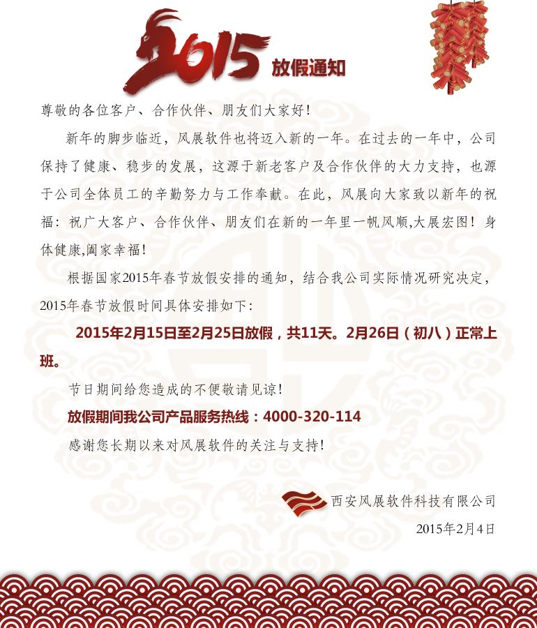 关于2015年春节放假通知