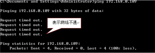 输入IP地址按回车之后如果出现下图表明网络连接失败: